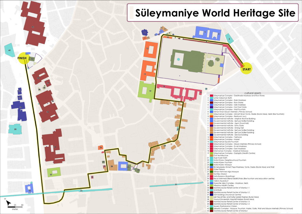- Kültürel Miras: Rotada; Süleymaniye Külliyesi, ahşap sivil mimari dokusu ve Cumhuriyet Dönemi eseri olan İMÇ Blokları yer almaktadır.
